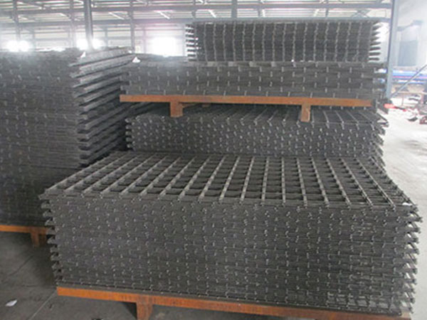 鋼筋焊接網(wǎng)一般采用CRB550級冷軋帶肋鋼筋或GB1499規(guī)定牌號的熱軋帶肋鋼筋。鋼筋焊接網(wǎng)直徑為4-14mm,其中可采用0.5mm進(jìn)級直徑??紤]運(yùn)輸條件,焊接網(wǎng)長度不宜超過12m,寬度不宜超過3.4m。焊接網(wǎng)制作方向的鋼筋(或稱縱筋)間距宜為100、150、200mm,另一方向的鋼筋間距一般為100、150、200、300mm,有時可達(dá)400mm。當(dāng)焊接網(wǎng)縱橫向鋼筋均為單根鋼筋時,較細(xì)鋼筋的公稱直徑應(yīng)不小于較粗鋼筋公稱直徑的0.6倍,即dmin≥0.6damx。焊接網(wǎng)焊點(diǎn)的抗剪力(單位為N)應(yīng)不小于150與較粗鋼筋公稱橫截面積(單位為mm2)的乘積。